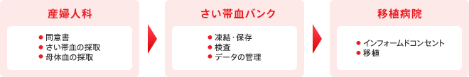 「さい帯血バンク」とは、さい帯血の提供に同意された妊産婦さんから戴いたさい帯血を凍結保存し、移植を希望される患者さんに提供するところです。