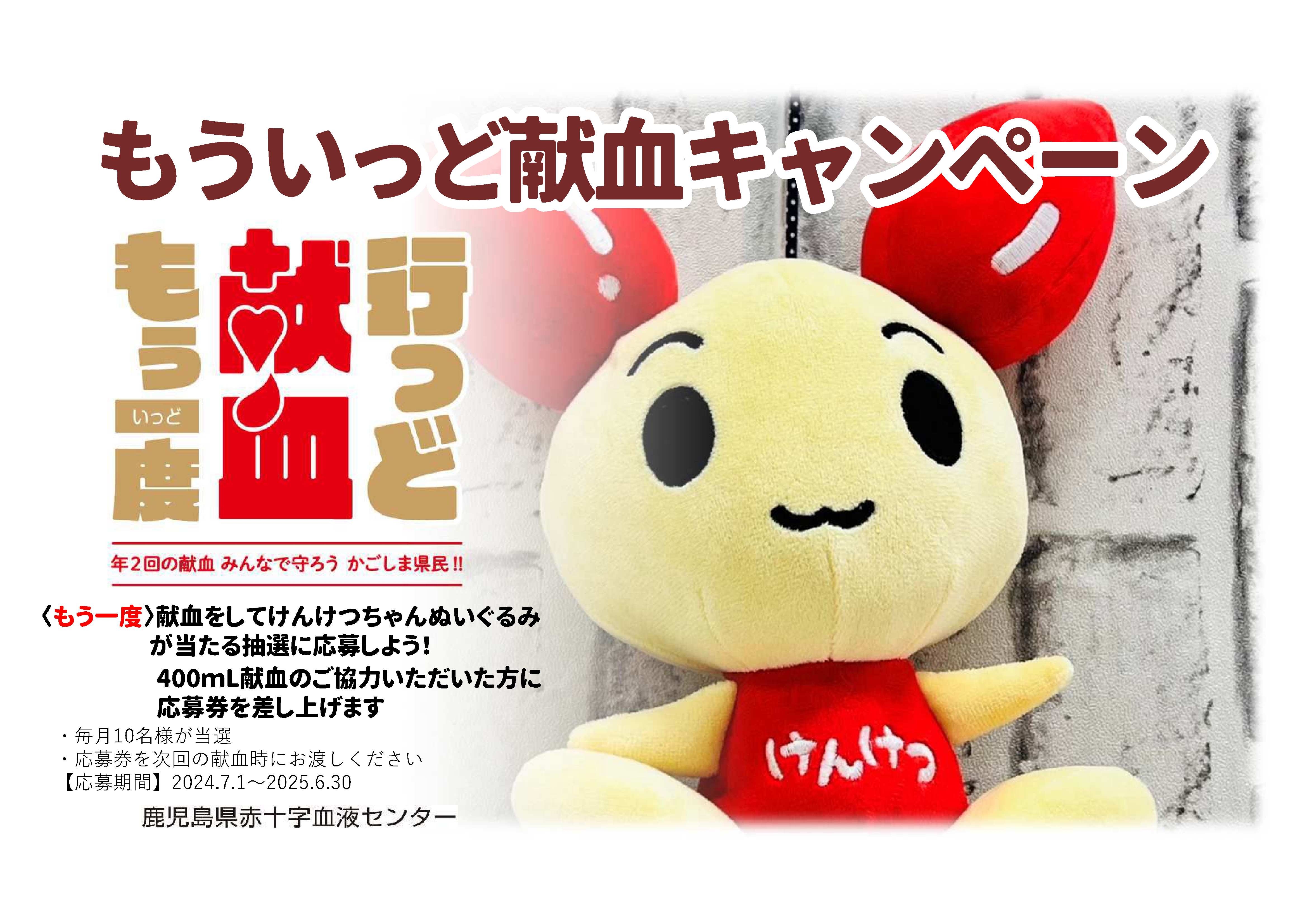 ②2025年6月30日までの期間で、もう一度400mL献血にご協力いただき、受付スタッフに応募券をお渡しください。