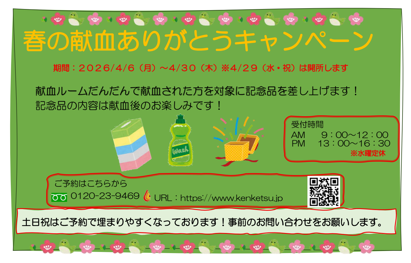 献血ルームだんだん 春の献血ありがとうキャンペーン