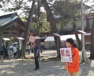 血液センターは例年通り5月2日、3日の2日間、出雲大社献血へ出かけました。元号改定により、御朱印を求めて参拝される方が例年に比べて多く、出雲大社は賑わっていました。職員さんにお聞きしたところ、特に5月1日は参拝者が初詣並みに多かったそうです。明治神宮では8~10時間待ちという報道もありましたが、出雲大社は最高でも1時間待ちだったとのことでした。近年の御朱印ブームもあわせ、5月2日の時点で既に御朱印帳が売り切れになるほどだったとか。