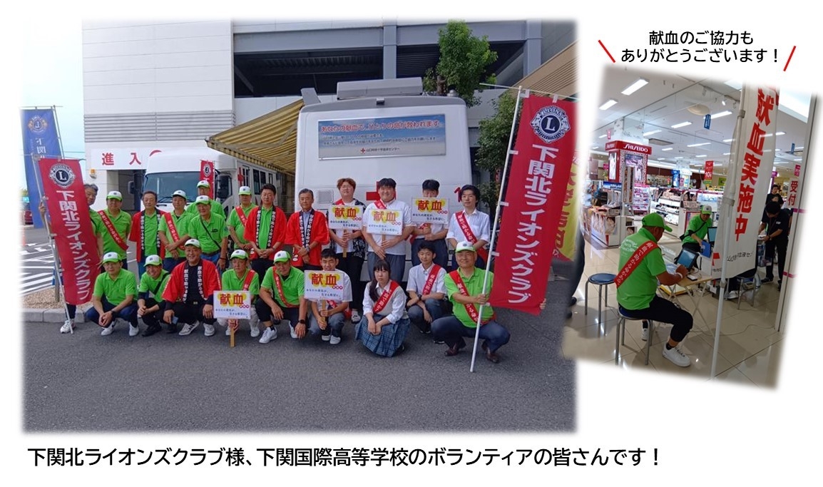 下関北ライオンズクラブの会員の皆様、下関国際高等学校のボランティアの皆さん、献血にご協力いただいた皆様、そして、会場として場所を提供してくださったゆめシティ様ありがとうございました。