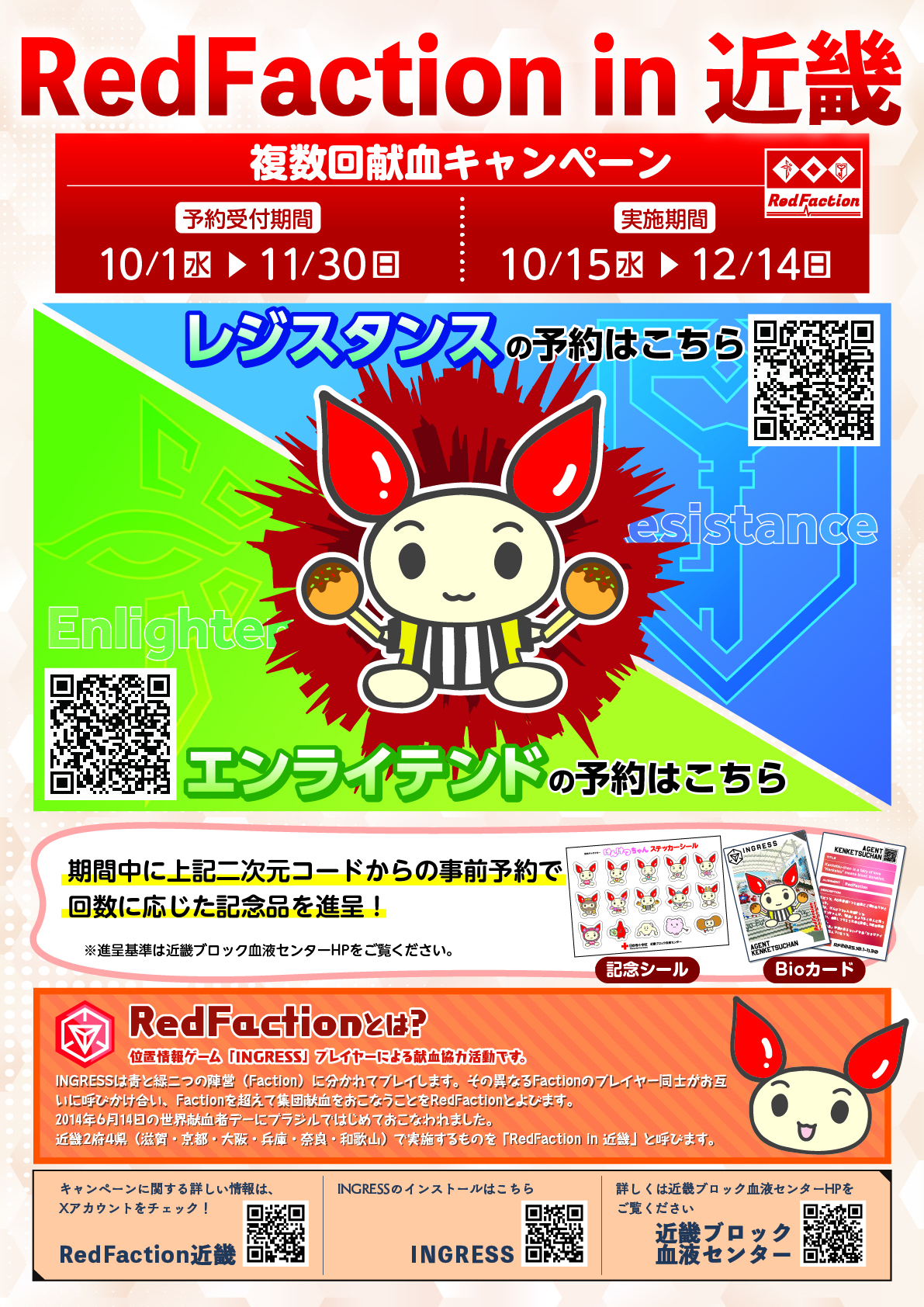 「RedFaction in 近畿」として複数回献血キャンペーンが行われます。