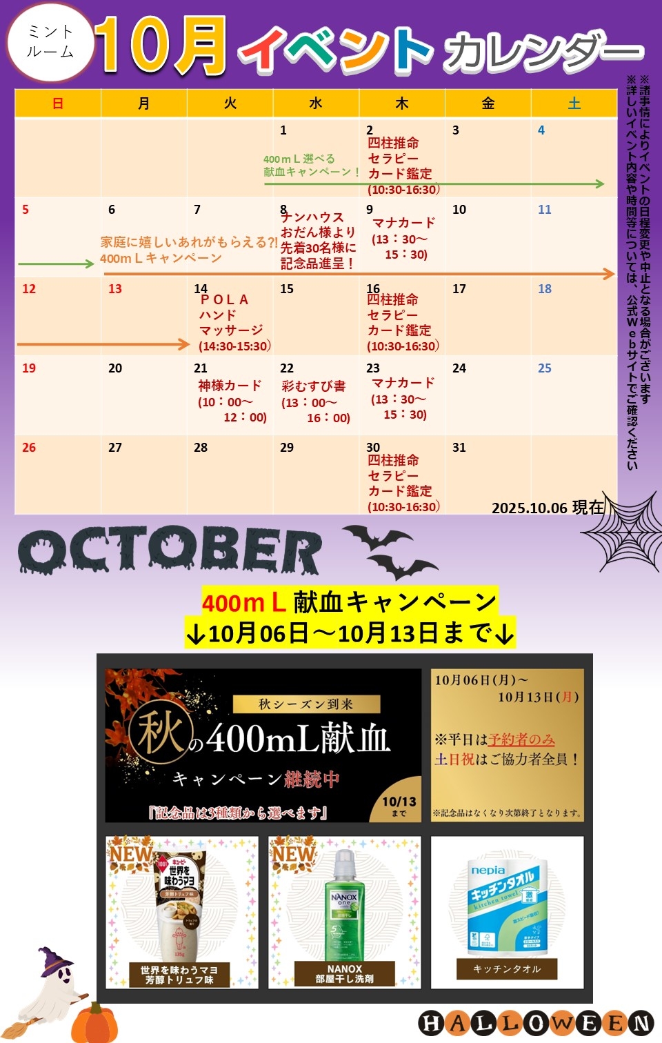 【新長田鉄人前】《10月のイベントカレンダー》過去のお知らせ