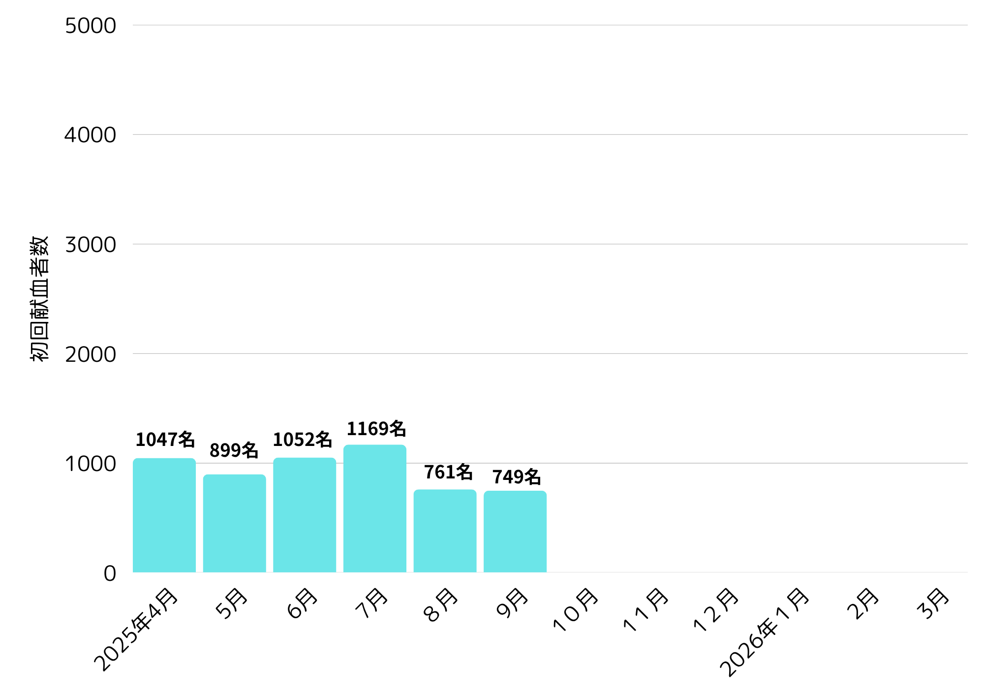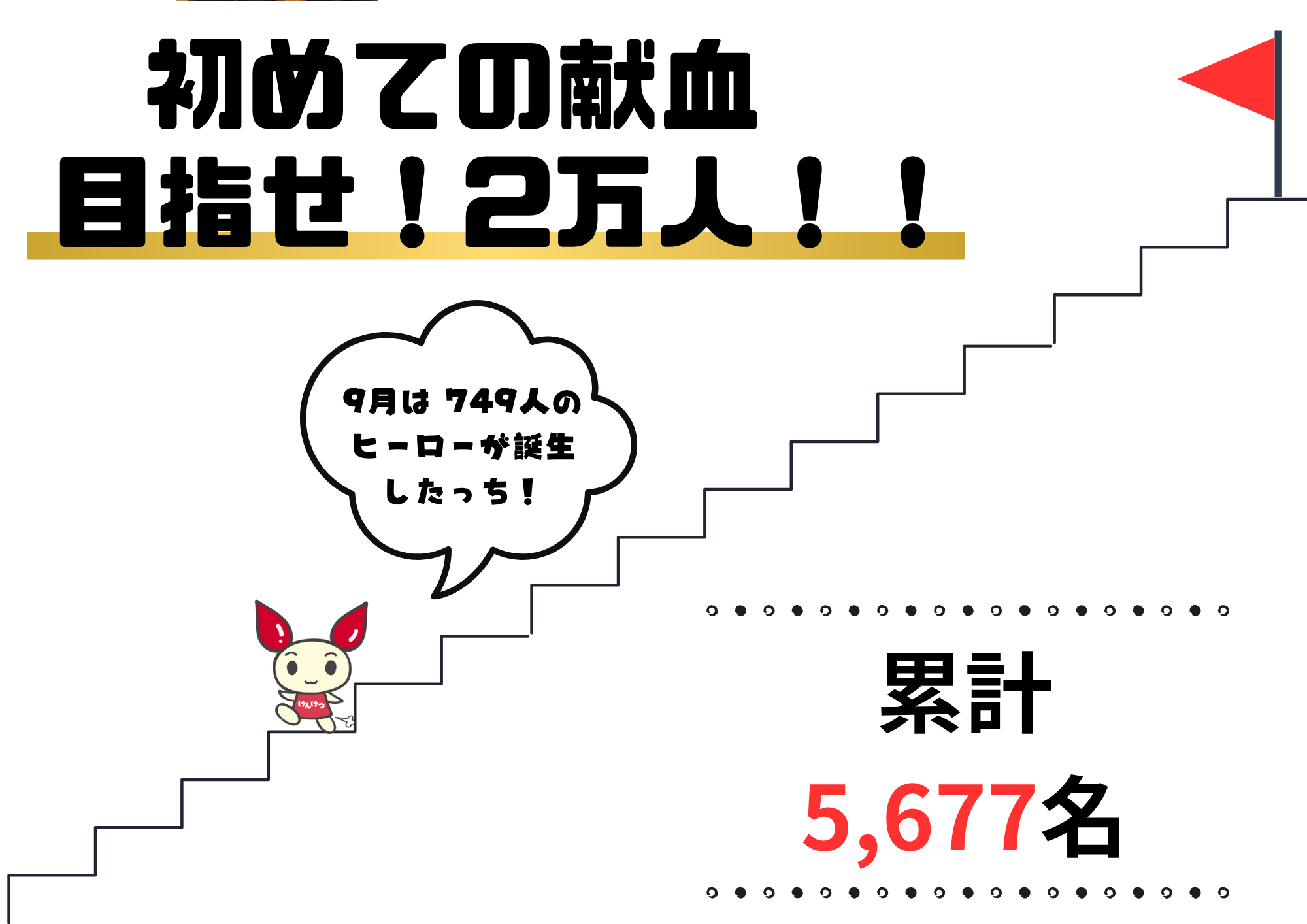 9月は、749名の方に初めての献血ご協力をいただきました。ありがとうございました。