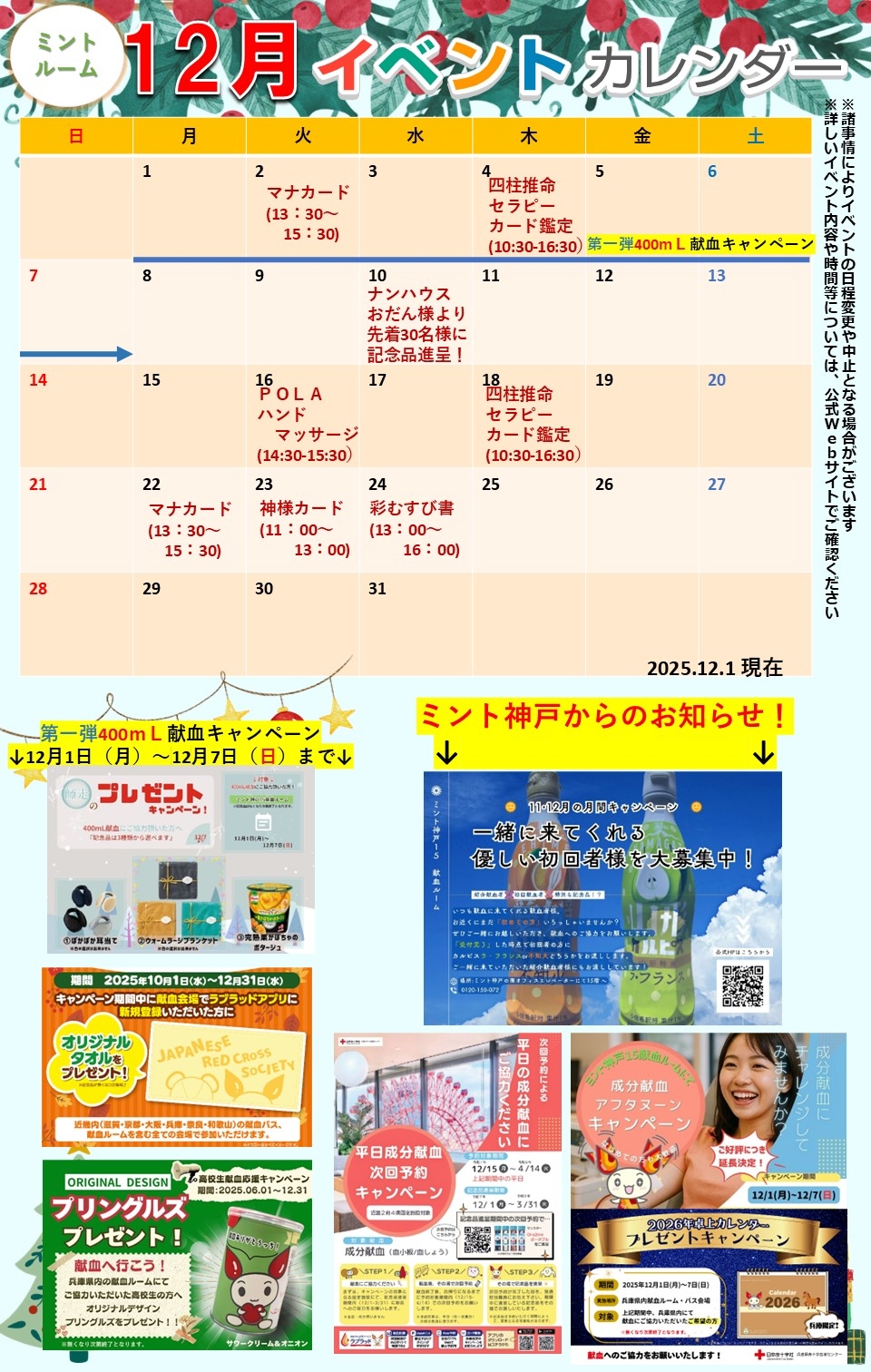 【姫路みゆき】《12月のイベントカレンダー》過去のお知らせ