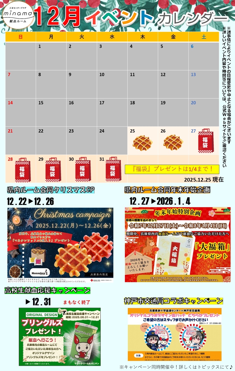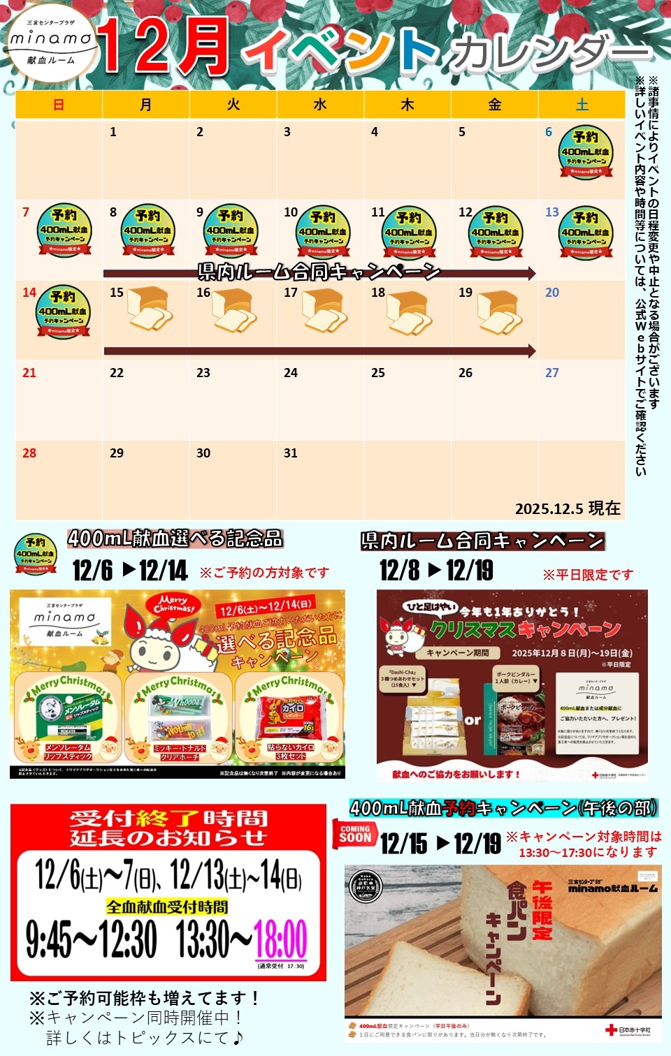 実施時間等の詳細は、各献血ルーム紹介ページでご確認いただくか、献血ルームまでお問合せください。