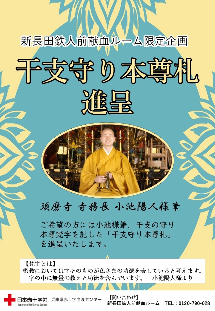新長田鉄人前献血ルームでは、令和八年の干支「午」にちなんだ 干支守り本尊札 を進呈します。