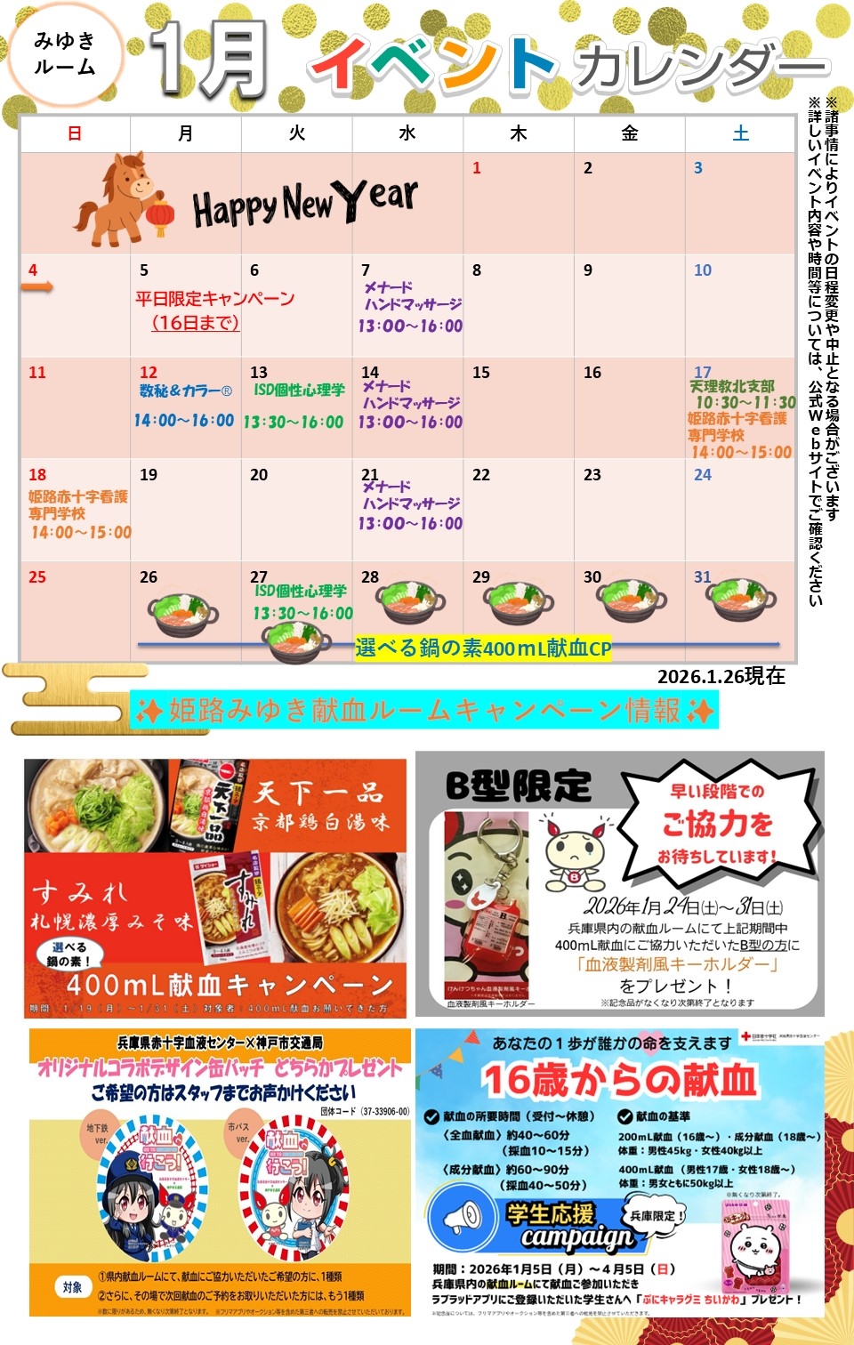 【ミント神戸15】《1月のイベントカレンダー》過去のお知らせ