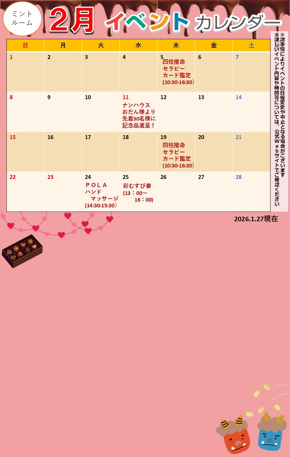 【にしきた】《2月のイベントカレンダー》過去のお知らせ
