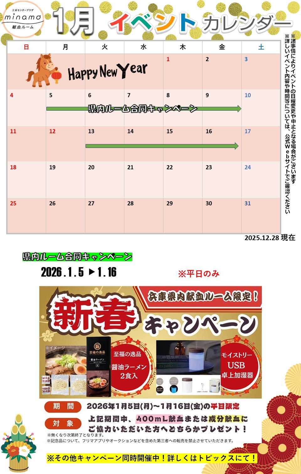 【ミント神戸15】《1月のイベントカレンダー》過去のお知らせ