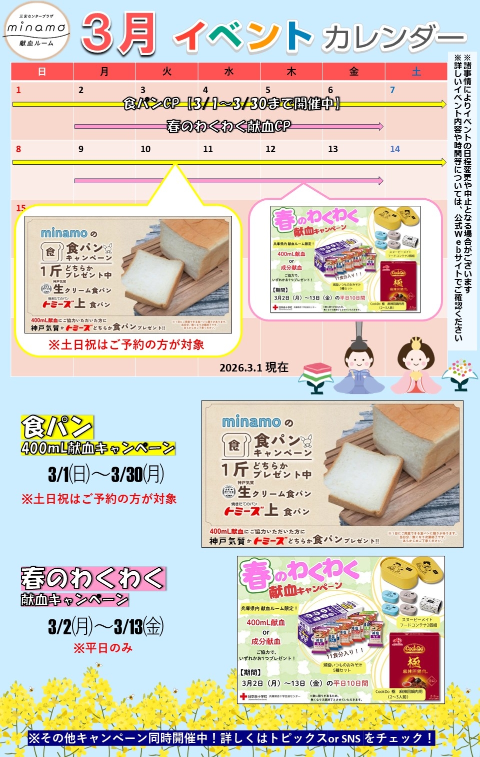 2月 鉄人前献血ルーム献血感謝の日過去のお知らせ