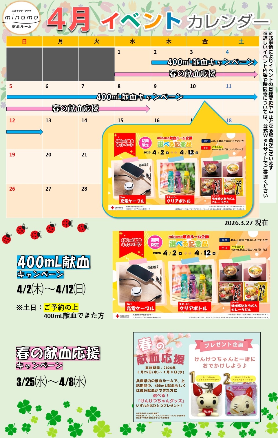 【姫路みゆき】《4月のイベントカレンダー》過去のお知らせ