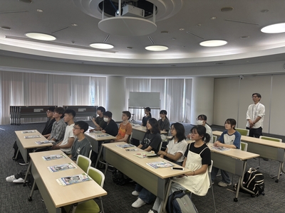 セミナーでは、血液の役割や献血の流れ、若い世代の献血協力の重要性について学んでいただき、庁舎見学では献血でいただいた血液が血液製剤になるまでの製造工程や血液製剤の保管庫を見学いただきました。