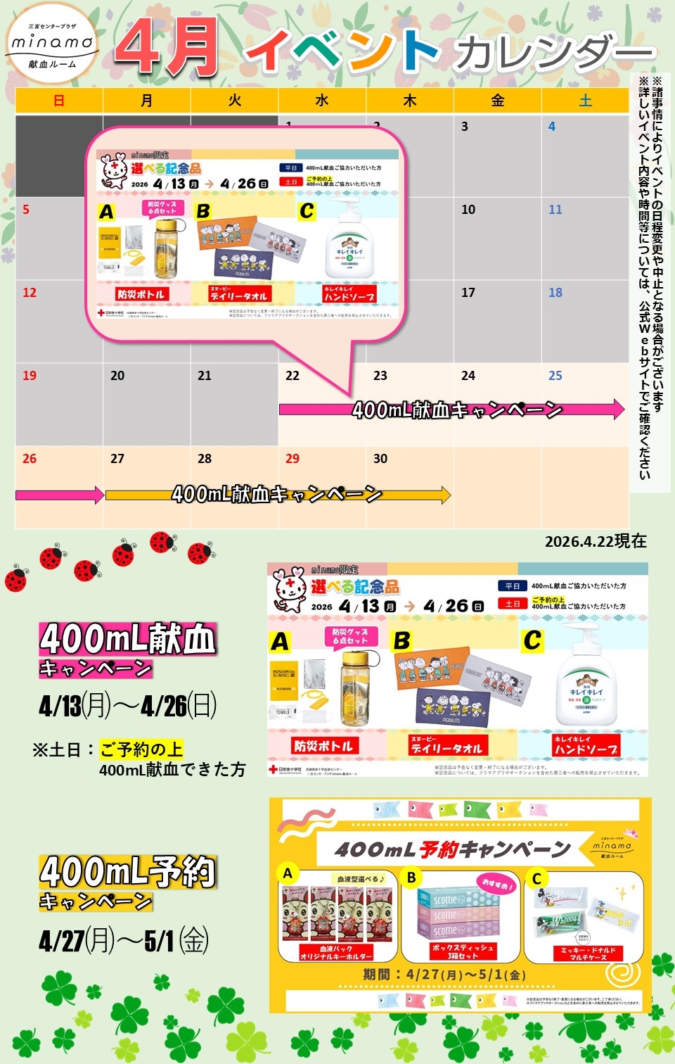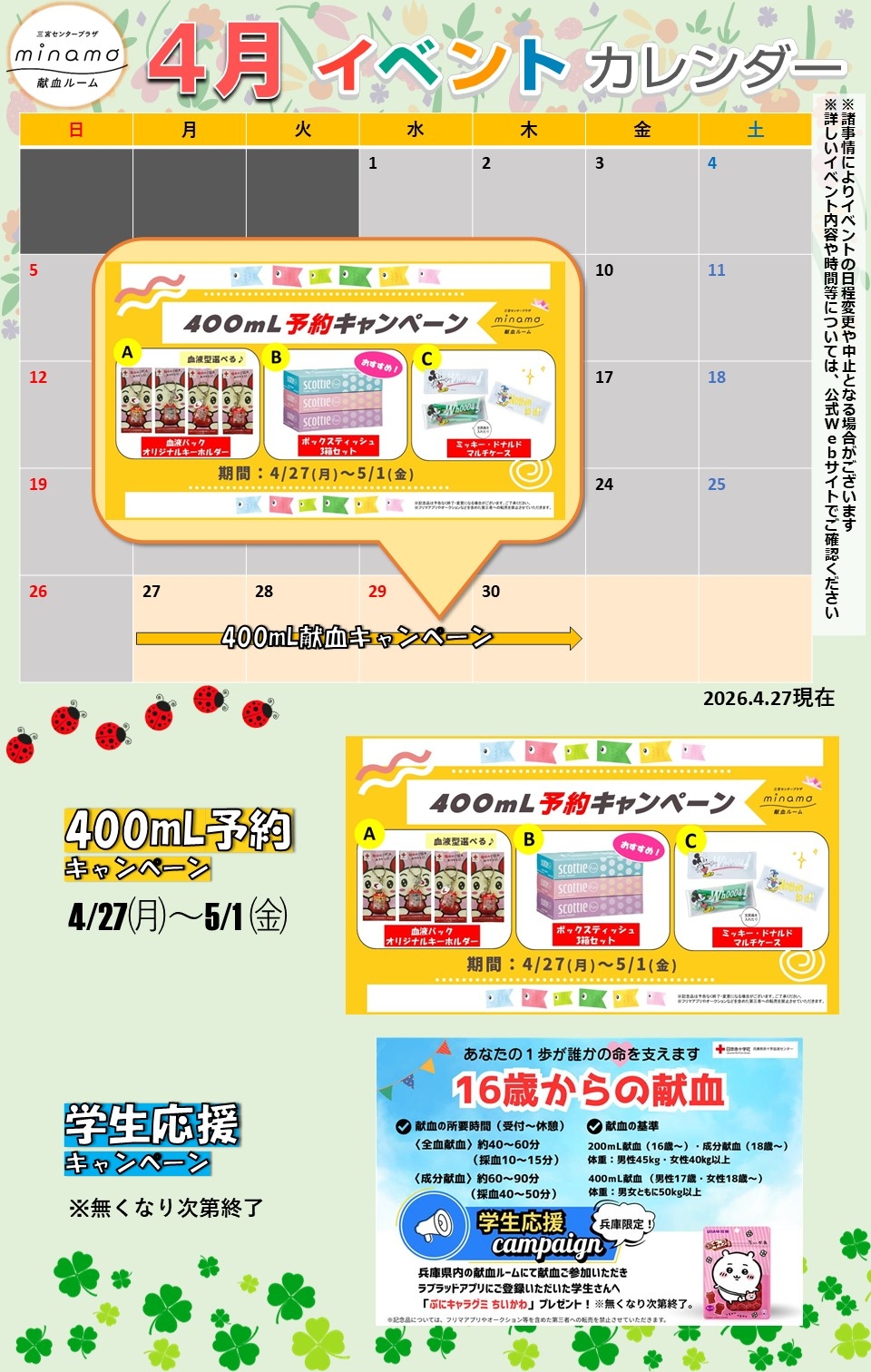 実施時間等の詳細は、各献血ルーム紹介ページでご確認いただくか、献血ルームまでお問合せください。