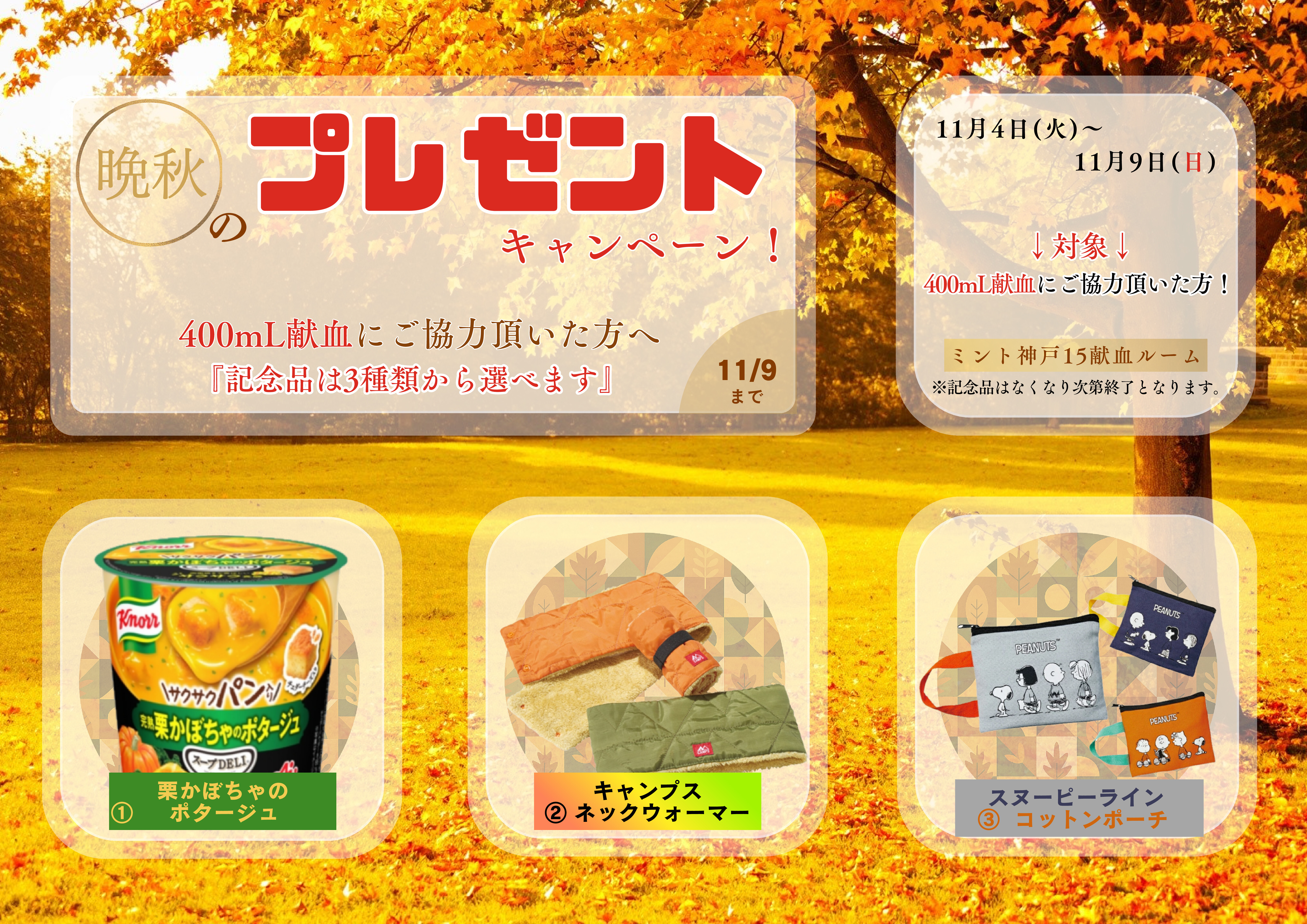 対象:400mL献血にご協力頂いた方へ「選べる記念品」をプレゼント!