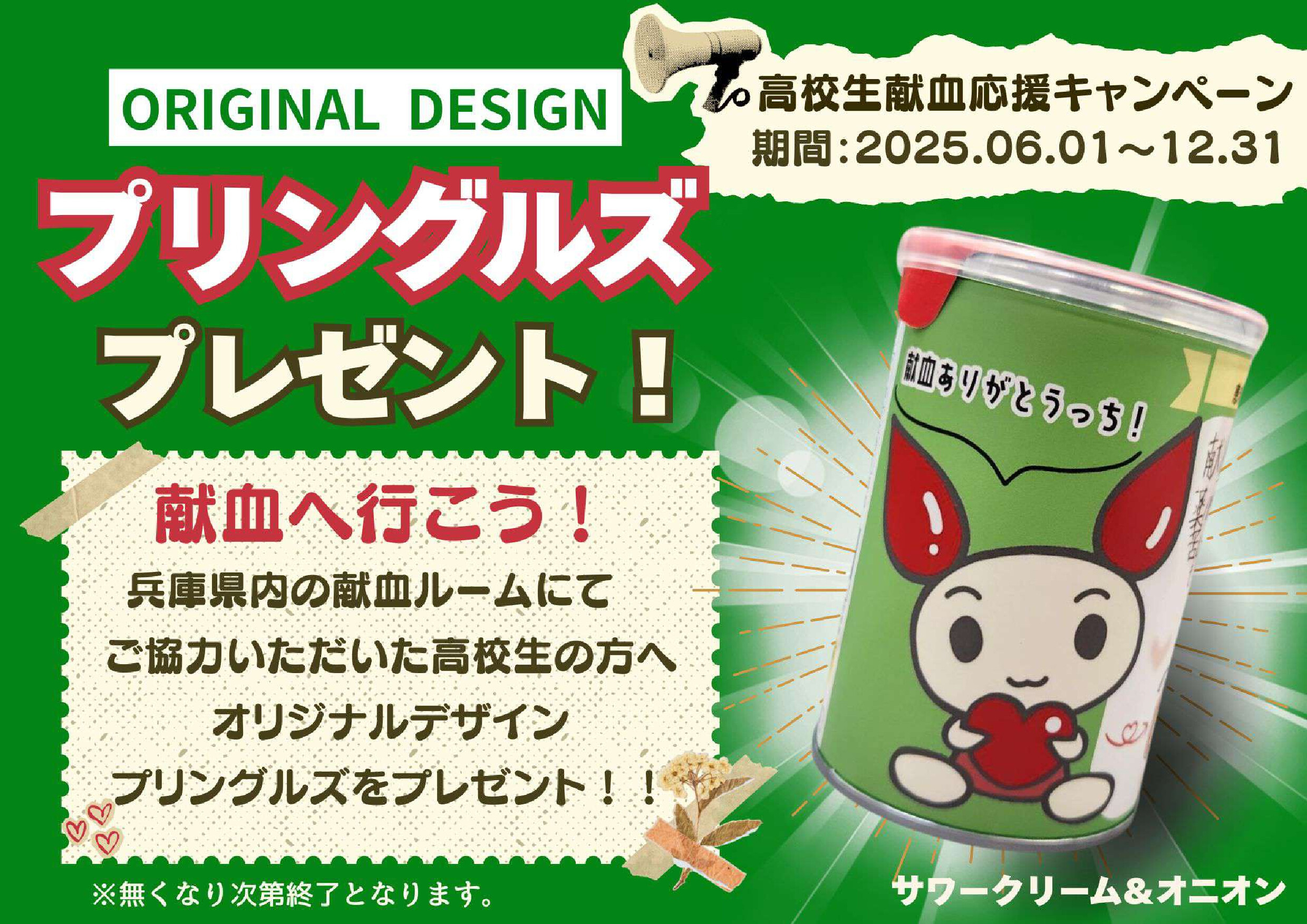 高校生で献血に協力いただいた方に、けんけつちゃん限定ラベルのプリングルズプレゼント!