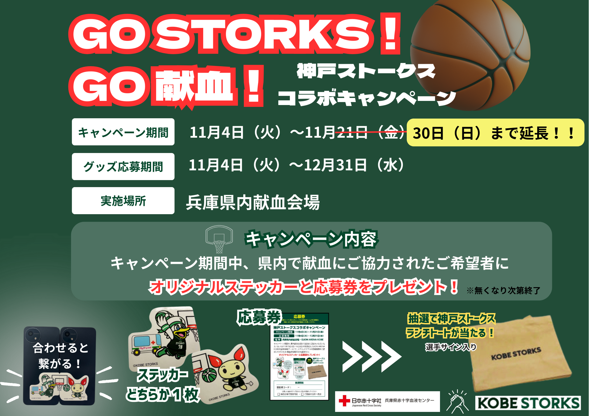★神戸ストークスコラボキャンペーン GO STORKS!GO 献血!★