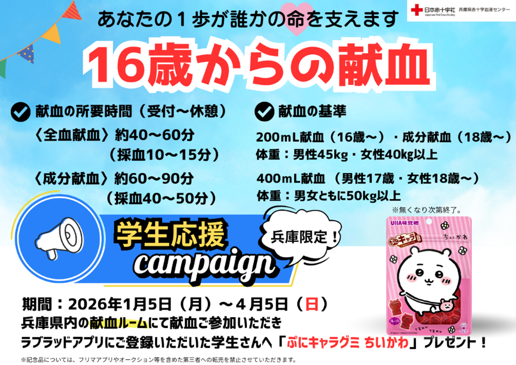 平素より、献血にご理解ご協力をいただき誠にありがとうございます。