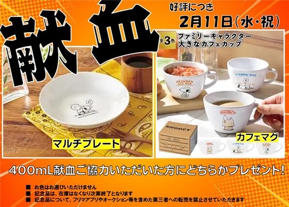 期間中、400mL献血にご協力いただいた方へ【選べる記念品】プレゼント!