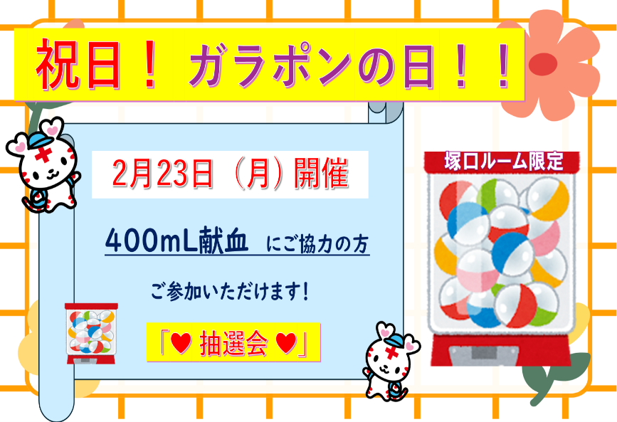第7弾 2月23日(月)開催 『いこうぜ!400mL献血』