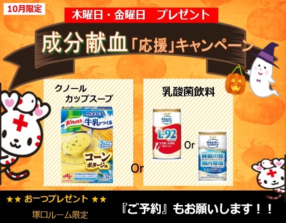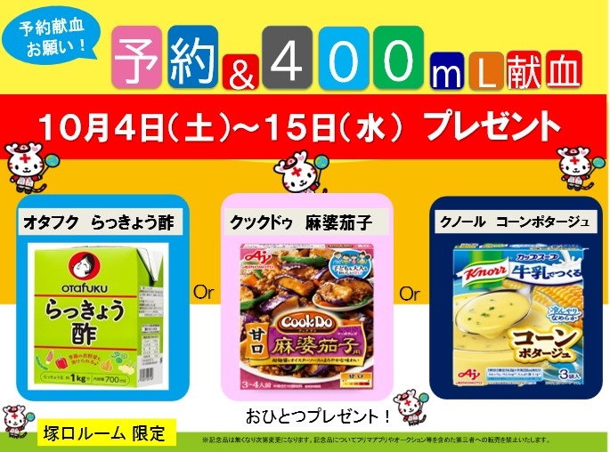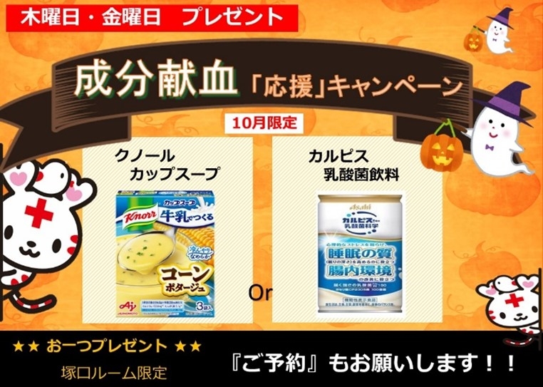 10月に「ご予約」を優先で「400mL献血」にご協力頂いた皆様に、