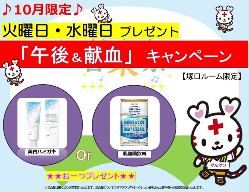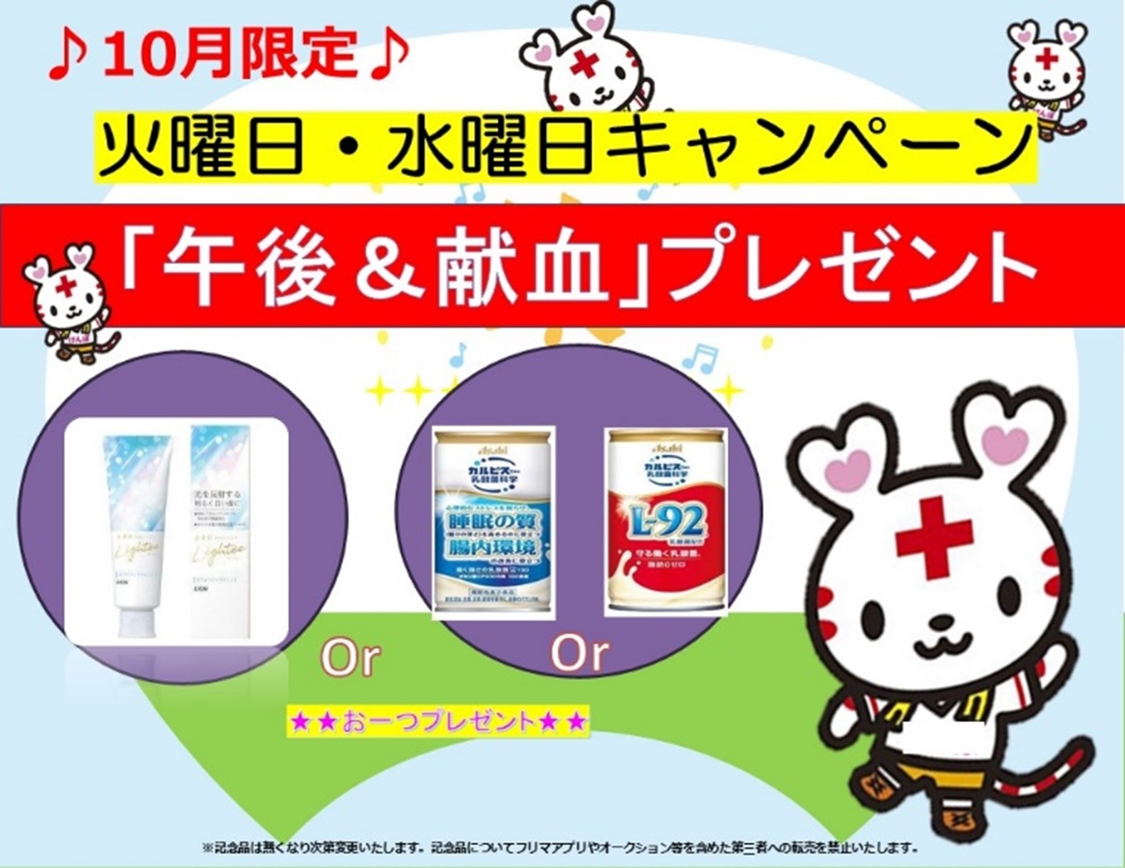 火曜日・水曜日限定!『午後&献血』応援キャンペーン!