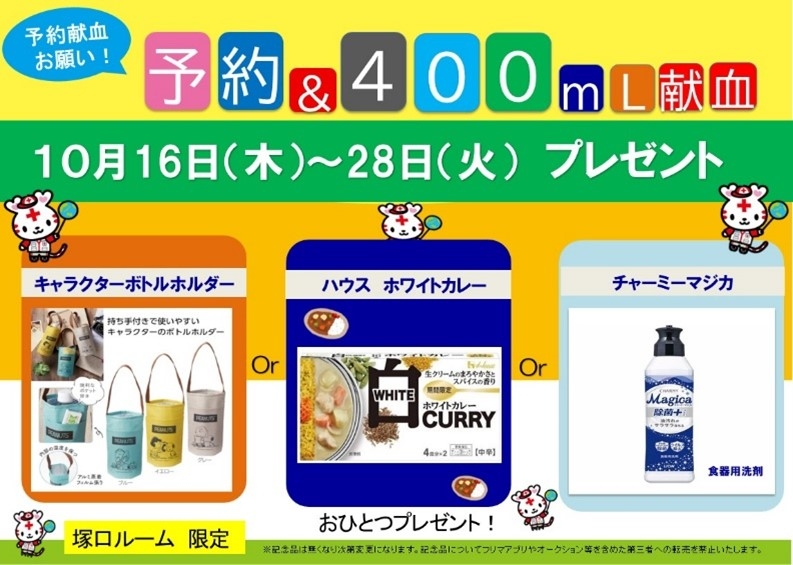 10/16(木)~ 10/28(火)。「ご予約」で「400mL献血」にご協力頂いた皆様に、