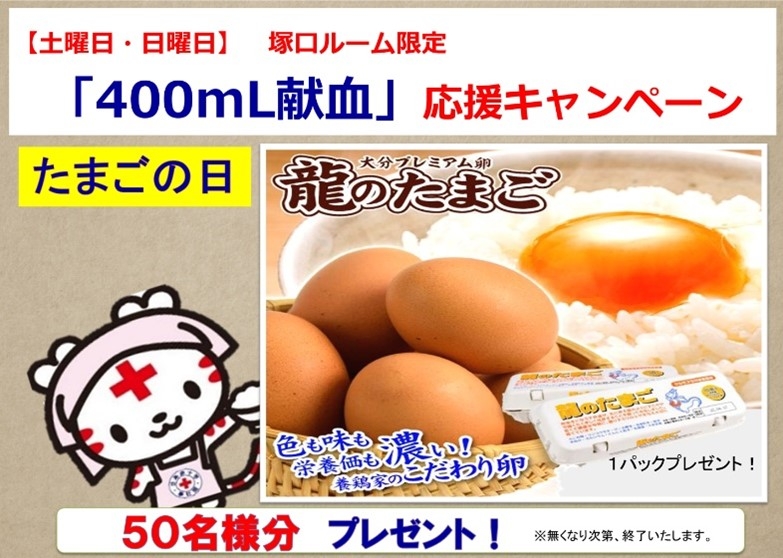 土曜日・日曜日限定 『400mL献血』応援キャンペーン!