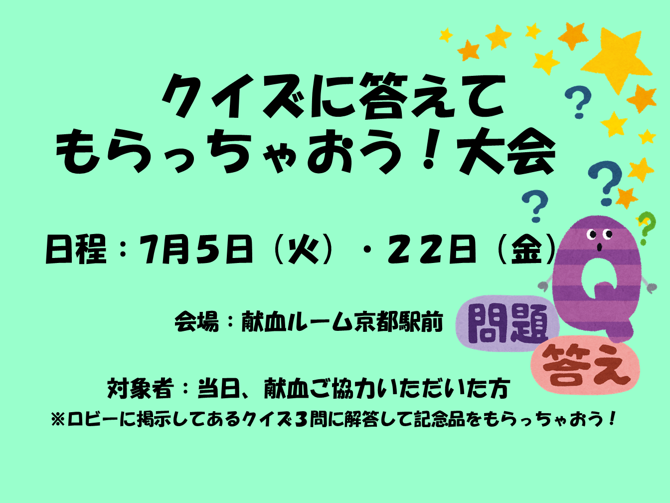 献血ルーム京都駅前にて、クイズに参加して記念品をもらっちゃおう!!