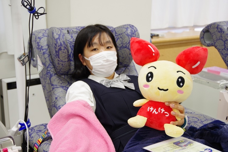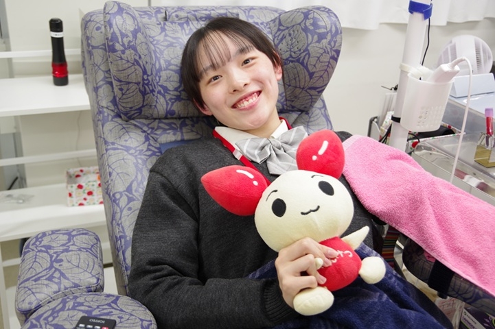 『昔、父が事故に遭い、輸血を受けたと聞きました。父はその出来事がきっかけで、医療従事者になり、病院で働いています。病院のイベントでは、けんけつちゃんと会うこともあり、献血は身近でした。セミナーの動画を見ながら、"私の献血で誰かの命が助かるなら。"と思い、初めて献血をしました。』