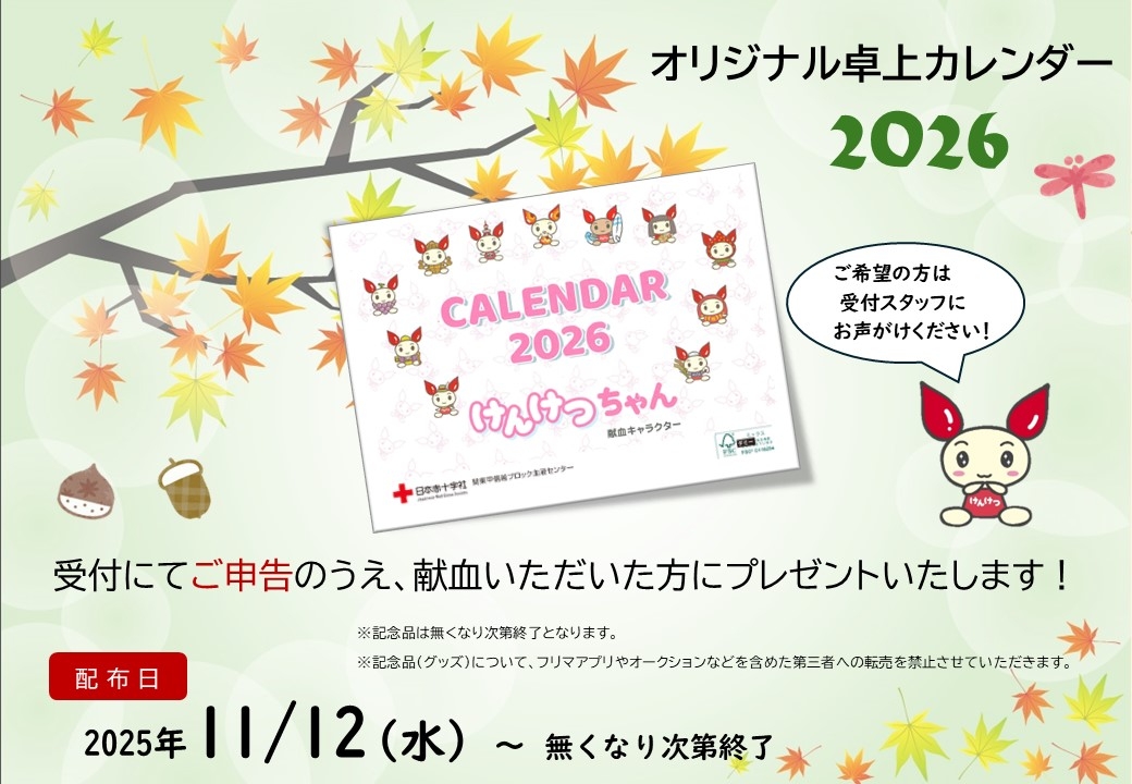 2025年11月12日(水)より、千葉県内の献血ルームで献血にご協力いただいた、ご希望の方に