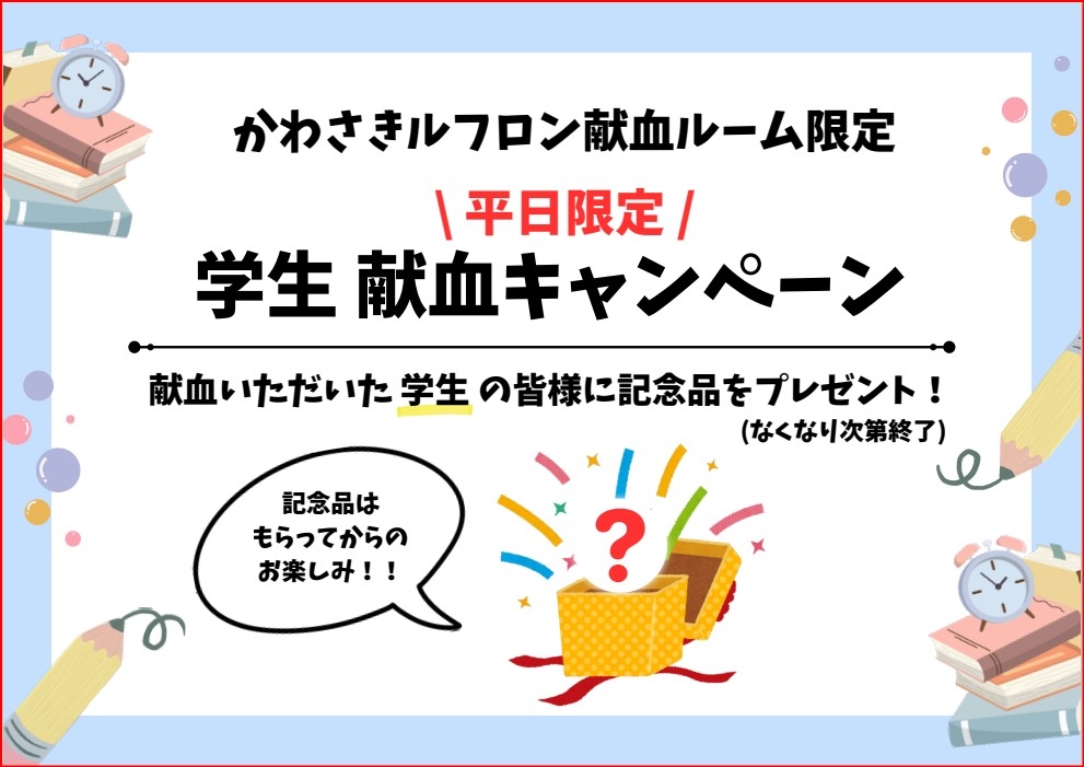 川崎ルフロン地下駐車場または川崎アゼリア駐車場に駐車し、献血受付時に駐車券をご提示いただいた方へ、