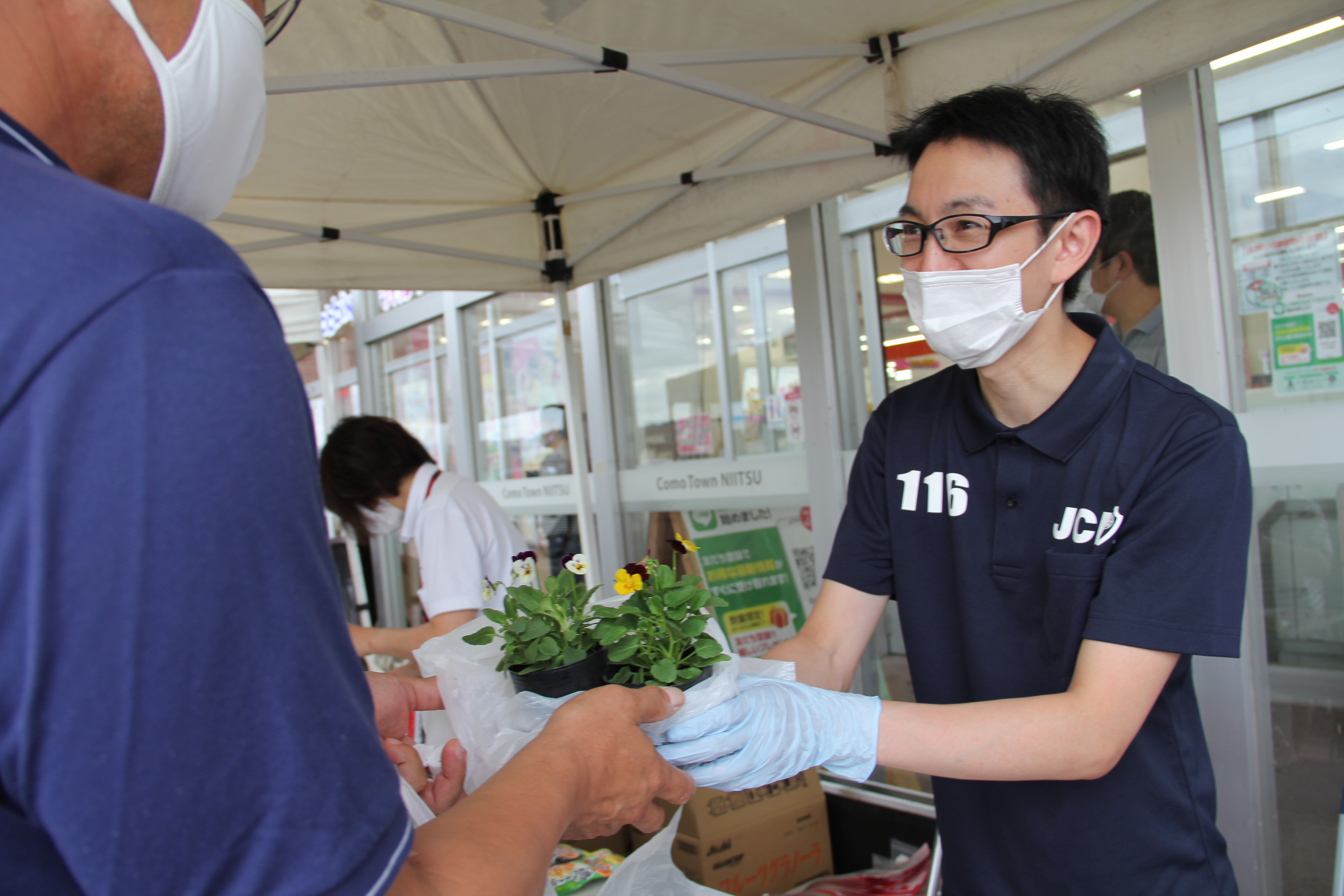 秋葉区産のビオラの苗を提供いただき、献血後の皆様に手渡していただきました。