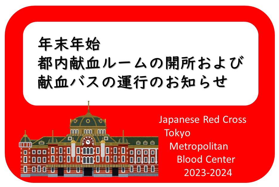 令和5年度、年末年始の献血ルームの開所予定および献血バスの運行予定についてお知らせします。