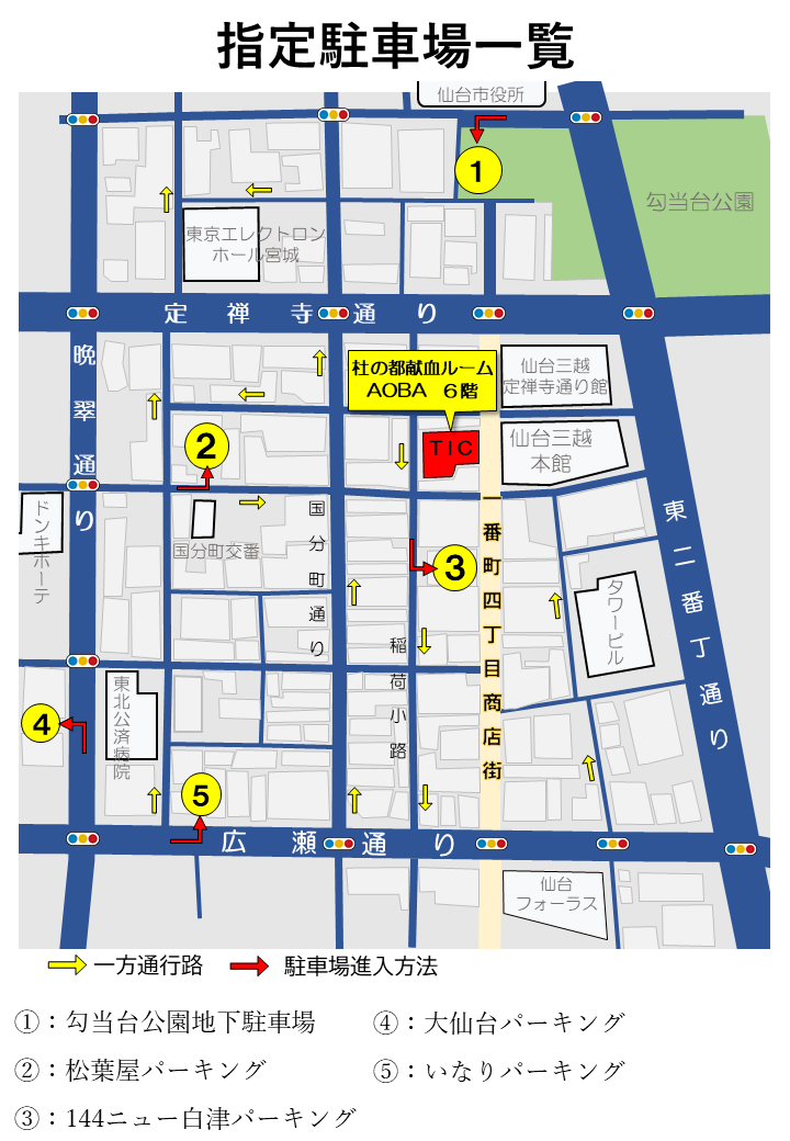 なお、自転車やバイクでお越しの方は、献血ルームの入っているTICビル屋上駐輪場が無料で利用可能です。(稲荷小路のTICビル裏側に駐輪場専用エレベーターがあります。)