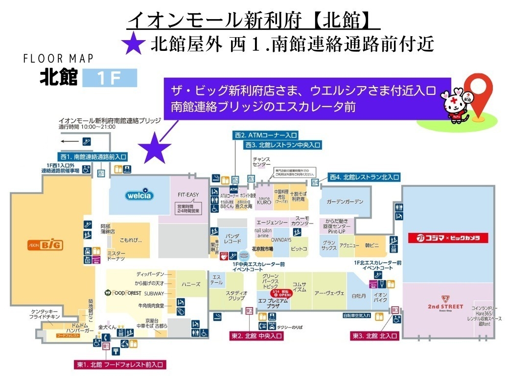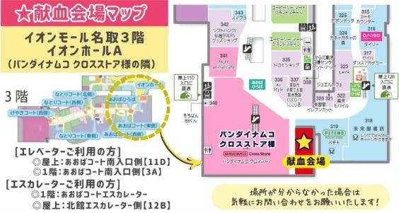 | 市区町村 | 献血会場 | 受付時間 |