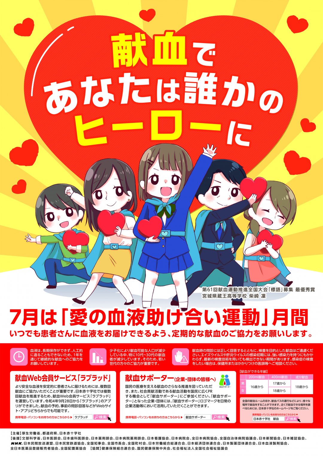 7月1日~31日までの1カ月間にわたり、「愛の血液助け合い運動」を全国で展開します。