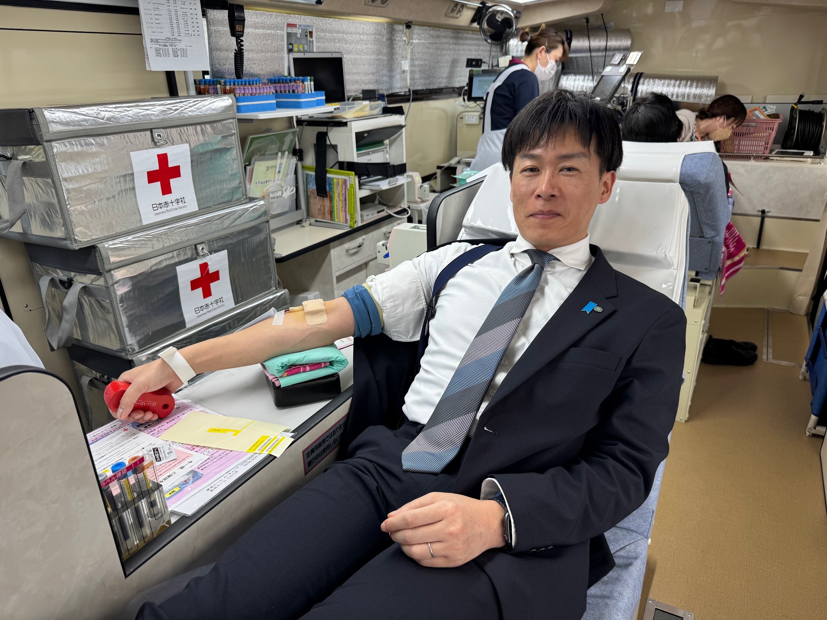 当日は羽咋ライオンズクラブ様の協力のもと、多くの町民の皆さまや役場職員の方々とともに稲岡 健太郎町長にも献血にご協力いただきました。